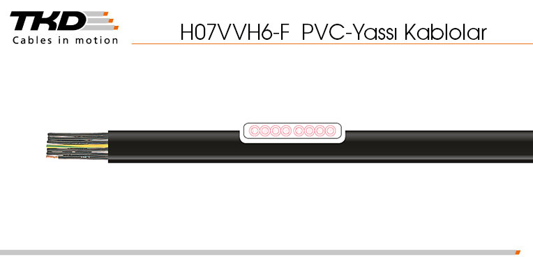 H07VVH6-F PVC-Yassı Kablolar, taşıma sistemleri, takım tezgahları, özellikle yük asansörleri, asansörler, vinç ve konteyner köprüleri için ve hattın tek bir seviyede güçlü virajlara ve kalıcı hareketlere maruz kaldığı her durumda bir enerji ve kontrol hattı olarak kullanılır. Kuru, nemli ve ıslak odalarda kullanım için uygundur.